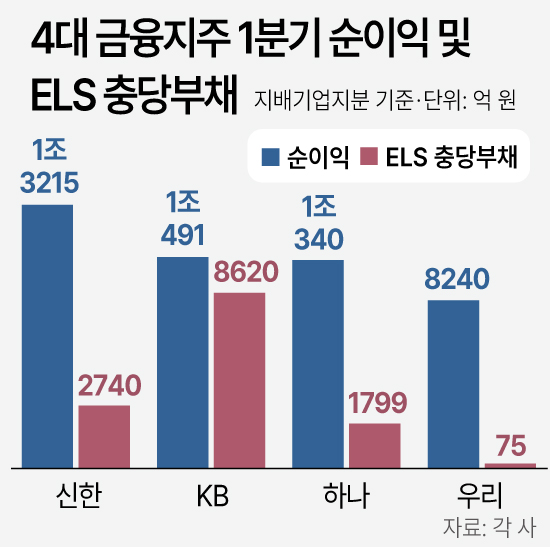 4´ë ±ÝÀ¶ÁöÁÖÀÇ ¼øÀÌÀÍÀÌ °¨¼ÒÇÑ °Ç È«Äá ELS ÅõÀÚÀÚ¿¡ ´ëÇÑ ¼Õ½Ç ¹è»ó¿ë Ãæ´çºÎä Àû¸³¾×À» Å©°Ô ´Ã·È±â ¶§¹®ÀÌ´Ù. KB±ÝÀ¶Àº 1ºÐ±â¿¡ ELS °ü·Ã Ãæ´çºÎä Àû¸³¾×À¸·Î 8620¾ï ¿øÀ» ½×¾Ò´Ù. ½ÅÇѱÝÀ¶Àº 2740¾ï ¿ø, Çϳª±ÝÀ¶Àº 1799¾ï ¿øÀ» °¢°¢ Ãæ´çºÎä·Î Àû¸³Çß´Ù. È«Äá ELS ÆÇ¸Å Àܾ×ÀÌ Áö³ÇØ ¸» 413¾ï ¿ø¿¡ ±×ÃÆ´ø ¿ì¸®±ÝÀ¶Àº 75¾ï ¿øÀÇ Ãæ´çºÎä Àû¸³¾×À» ä¿ü´Ù.