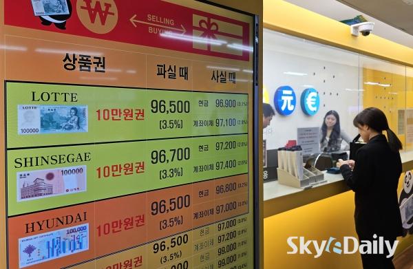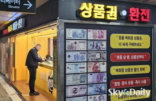 ¡ã 5ÀÏ ¿ÀÈÄ ¼­¿ï ÁöÇÏö 2È£¼± À»Áö·ÎÀÔ±¸¿ª ³» »óǰ±Ç ȯÀü¼Ò¿¡¼­ ½Ã¹ÎµéÀÌ ¼îÇÎ Àü »óǰ±ÇÀ» ±¸¸ÅÇϰųª Çö±ÝÈ­Çϰí ÀÖ´Ù. °í¹°°¡ ½Ã´ë, Á¶±ÝÀÌ¶óµµ ÁöÃâÀ» ÁÙÀÌ·Á´Â ¾Ë¶ã ¼ÒºñÀÚµéÀÌ »óǰ±Ç ȯÀü¼Ò·Î ¸ô¸®°í ÀÖ´Ù. ÃÖ±Ù¿¡´Â ¿ÀÇÁ¶óÀÎ ¸ÅÀå»Ó¸¸ ¾Æ´Ï¶ó 24½Ã°£ ¹«ÀΠŰ¿À½ºÅ©¿Í ¸ð¹ÙÀÏ ¾Û ¿¹¾à ¼­ºñ½º±îÁö µµÀÔÇÏ¸ç ´ëÇüÈ­¡¤½º¸¶Æ®È­µÇ´Â Ãß¼¼ÀÌ´Ù.  ÀÌÁ¾¿ø ±âÀÚ ¨Ï½ºÄ«À̵¥Àϸ®