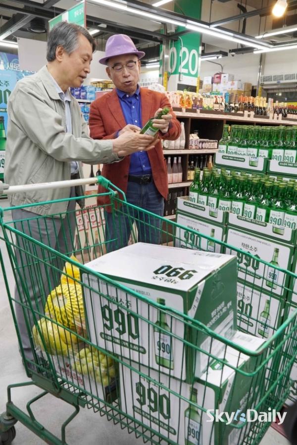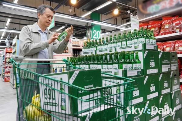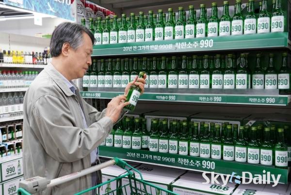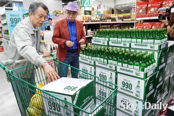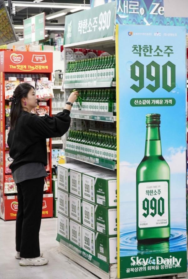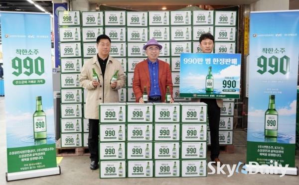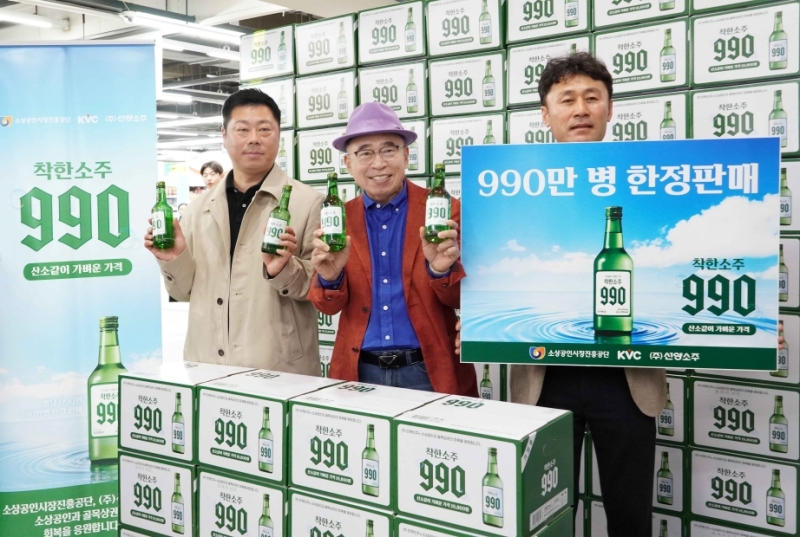 ¡ã Á¶¿õ·¡(°¡¿îµ¥) ¼±¾ç¼ÒÁÖ È¸ÀåÀÌ 6ÀÏ ¿ÀÀü ¼­¿ï ¼ÛÆÄ±¸ °¡¶ô³ó¼ö»ê¹°µµ¸Å½ÃÀå ´Ù³ó¸¶Æ®¿¡¼­ ¿­¸° ¡®ÂøÇѼÒÁÖ 990¡¯ Ãâ½Ã Çà»ç¿¡¼­ Á¦Ç°À» µé°í Æ÷Á ÃëÇϰí ÀÖ´Ù. ¼±¾ç¼ÒÁÖ´Â ¼Ò»ó°øÀνÃÀåÁøÈï°ø´Ü, Çѱ¹¼öÆÛüÀÎÀ¯Åë»ç¾÷Çùµ¿Á¶ÇÕ(KVC)°ú ÇÔ²² µ¿³×½´ÆÛ¿¡ ¡®ÂøÇѼÒÁÖ 990¡¯ 990¸¸ º´À» °ø±ÞÇØ ¼ÒºñÀÚ °¡°Ý 990¿ø¿¡ ÆÇ¸ÅÇÑ´Ù. ¼±¾ç¼ÒÁÖ
