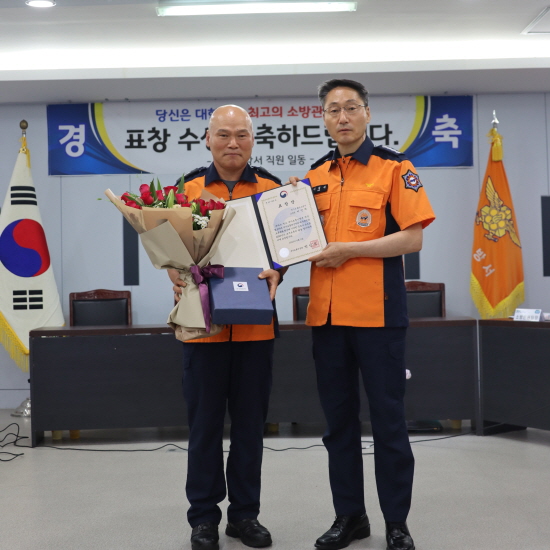 ¡ã°æ±âµµ È­¼º¼Ò¹æ¼­ ÀÌÀμ® ±¸Á¶´ëÀåÀÌ 24ÀÏ ÀÌÁ¤½Ä ¼Ò¹æ¼­ÀåÀ¸·ÎºÎÅÍ ¸ð¹ü Á¦º¹ ±Ù¹«ÀÚ Ç¥Ã¢À» ¼ö¿©¹Þ°í ÀÖ´Ù. È­¼º¼Ò¹æ¼­