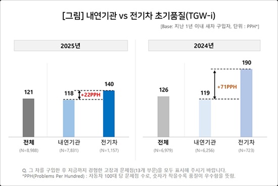 Àü±âÂ÷ÀÇ Ã¼Çè ¹®Á¦Á¡ ¼ö´Â Áö³ÇØ(190 PPH) ´ëºñ ¾à 26%(50 PPH) °¨¼ÒÇß´Ù. ¹®Á¦Á¡À» °æÇèÇÑ ¼ÒºñÀÚ ºñÀ²µµ 55%¿¡¼ 43%·Î 12%p °¨¼ÒÇß´Ù. ¹Ý¸é °°Àº ±â°£ ³»¿¬±â°üÂ÷ÀÇ ¹®Á¦Á¡ ¼ö(119¡æ118 PPH)´Â »ç½Ç»ó º¯È°¡ ¾ø¾ú°í ¹®Á¦ °æÇè ¼ÒºñÀÚ ºñÀ²Àº 2%p °¨¼Ò(38%¡æ36%)Çß´Ù.