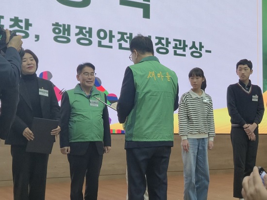 ¡ã ±èÅõ¿(¿ÞÂÊ µÎ¹øÂ°) »õ¸¶À»¹®°í ±¸¹Ì½ÃÁöºÎ ȸÀåÀÌ ÇàÁ¤¾ÈÀüºÎ Àå°ü»óÀ» ¼ö»óÇϰí ÀÖ´Ù. ±¸¹Ì½Ã