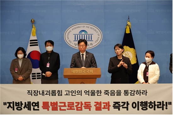 Àü±¹°ø°ø¿¬±¸³ëµ¿Á¶ÇÕ ¿ì»ó¿± À§¿øÀåÀº Á÷Àå ³» ±«·ÓÈûÀ¸·Î ¶°³­ °íÀÎÀ» Ã߸ðÇÏ¸ç °í¿ë³ëµ¿ºÎÀÇ Æ¯º°±Ù·Î°¨µ¶ °á°ú´ë·Î °¡ÇØÀÚµéÀ» ÀϹú¹é°èÇÒ °ÍÀ» ¿ä±¸Çß´Ù. ¶ÇÇÑ Çѱ¹Áö¹æ¼¼¿¬±¸¿øÀÌ Á¤»óÈ­µÉ ¶§±îÁö ³ëµ¿Á¶ÇÕµµ ³¡±îÁö ÅõÀïÇÒ °ÍÀ» ¹àÇû´Ù.