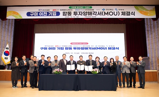 °æ»óºÏµµ ±¸¹Ì½Ã°¡ 12ÀÏ ½Ãû ´ë°­´ç¿¡¼­ ¡®¹Ì·¡Ã·´Ü¼ÒÀ硤µð¾¾Æ¼¡¤µÎÀÌ»ê¾÷¡¯°ú ±¸¹ÌÀÌÀü µî ÃÑ 1484¾ï ¿ø ½Å±ÔÅõÀÚ¿¡ µû¸¥ ÇÕµ¿ ÅõÀÚ¾çÇØ°¢¼­(MOU)¸¦ ü°áÇß´Ù.