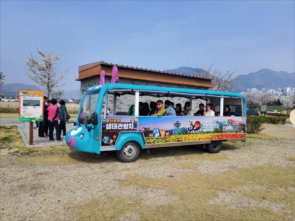 7ÀÏ ¾ç»ê½Ã¿¡ µû¸£¸é À̹ø¿¡ µµÀÔµÈ »ýŰü¶÷Â÷´Â ¾ç»ê½Ã °ü±¤Ä³¸¯ÅÍ ¡®»Ñ¿ë¡¯À» Çü»óÈ­ÇÑ µðÀÚÀÎÀ¸·Î ÀÚ¿¬È¯°æ°úÀÇ Á¶È­¸¦ °í·ÁÇÑ Ä£È¯°æ Àü±â Â÷·®ÀÌ´Ù. Â÷·®Àº ÃÖ´ë 23¸í±îÁö ž½ÂÇÒ ¼ö ÀÖÀ¸¸ç Ȳ»ê°ø¿ø Áß¾Ó Ä·ÇÎÀå Àα٠¹®È­°ü±¤Çؼ³»çÀÇ Áý ¿· ÀÓ½ÃÁÖÂ÷Àå¿¡¼­ Ãâ¹ßÇØ Ȳ»êÀ°±³, Áߺα¤Àå, Ȳ»ê ÆÄÅ©°ñÇÁÀå, ¼±ÂøÀå µîÀ» ¼øÈ¯ÇÑ µÚ Ãâ¹ßÁö·Î µ¹¾Æ¿À´Â ÄÚ½º·Î ¿î¿µµÈ´Ù.