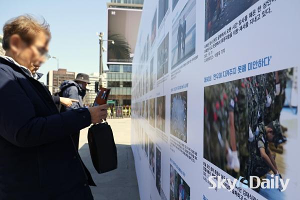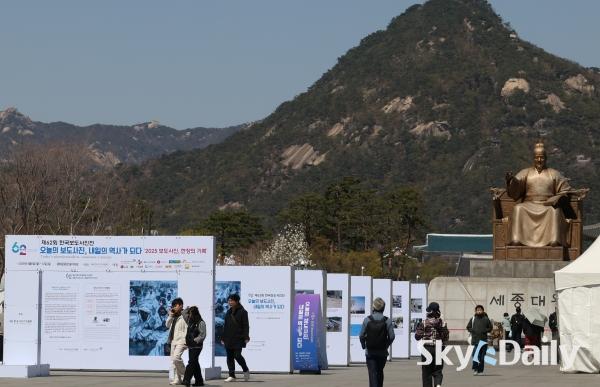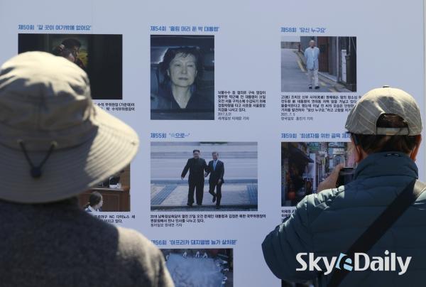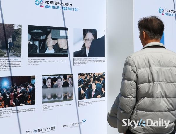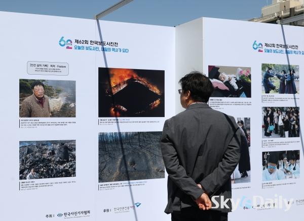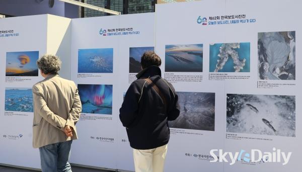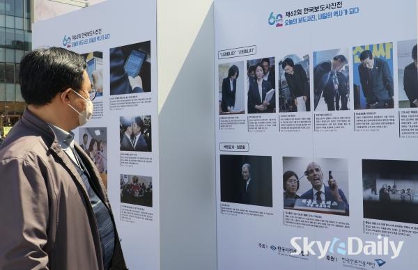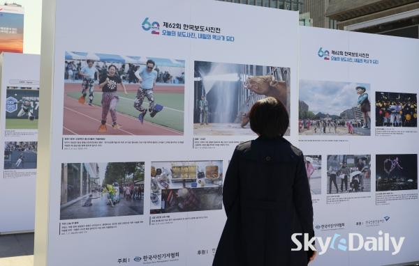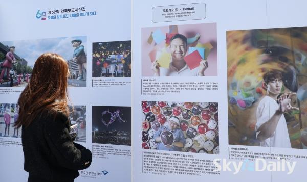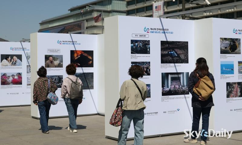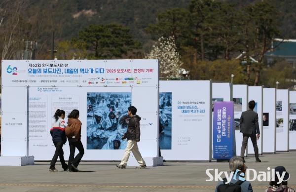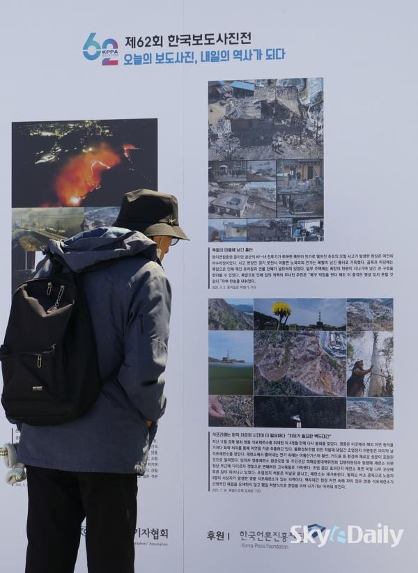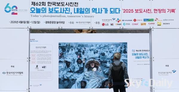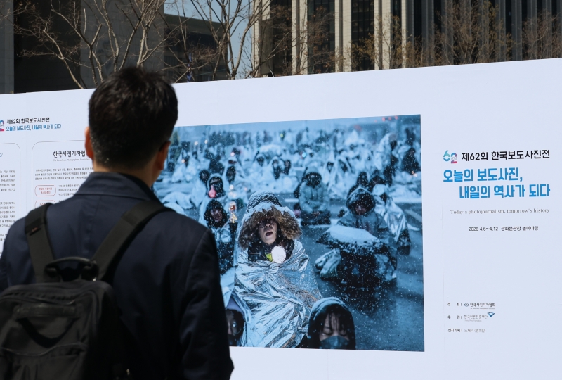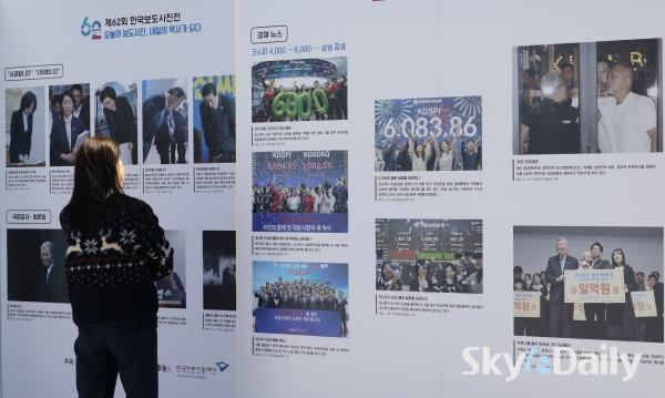 ¡ã Á¦62ȸ Çѱ¹º¸µµ»çÁøÀüÀÌ 7ÀÏ ¼­¿ï ±¤È­¹®±¤Àå ¾ß¿Ü Æ¯¼³ Àü½ÃÀå¿¡¼­ °³¸·ÇÑ °¡¿îµ¥ ÇÑ ½Ã¹ÎÀÌ ÀÛǰÀ» °ü¶÷Çϰí ÀÖ´Ù. Àü½ÃÀå¿¡´Â ´ë»ó ¼ö»óÀÛÀÎ ´º½Ã½º Á¤º´Çõ ±âÀÚÀÇ ¡®Æø¼³ ¼Ó ´ëÅë·É ÅðÁø ¿ÜÄ¡´Â Ű¼¼½º ½ÃÀ§´ë¡¯¸¦ ºñ·ÔÇØ 2025³â ÇÑ ÇØ Á¤Ä¡¡¤°æÁ¦¡¤»çȸ¡¤¹®È­¡¤½ºÆ÷Ã÷ µî ±¹³»¿Ü ´º½º ÇöÀåÀ» ±â·ÏÇÑ ¼ö»óÀÛÀÌ Àü½ÃµÆ´Ù. ¡®¿À´ÃÀÇ º¸µµ»çÁø, ³»ÀÏÀÇ ¿ª»ç°¡ µÇ´Ù¡¯¸¦ ÁÖÁ¦·Î ÇÑ À̹ø Àü½Ã´Â ÀÌ´Þ 12ÀϱîÁö Àü½ÃµÈ´Ù. ¹Ú¹Ì³ª ±âÀÚ ¨Ï½ºÄ«À̵¥Àϸ®
