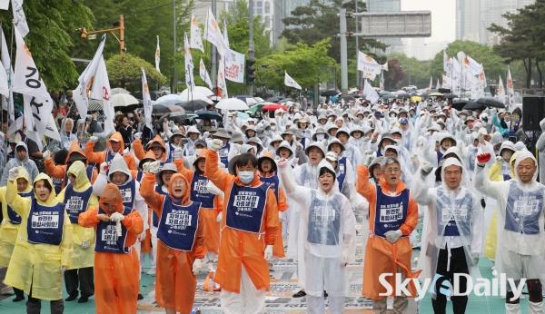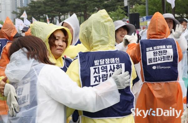 Àü±¹Àå¾ÖÀκθ𿬴ë, ±¹È¸ ¾Õ ¾ÖŸ´Â ¡®¿ÀüÅõÁö¡¯